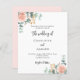 A chic white background. Decorated with rose gold and blush pink florals, roses flowers and green watercolored eucalyptus leaves, sprigs, greenery and faux gold sprigs. Personalise and add your names and details.