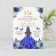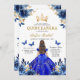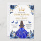 Floral Royal Blue Bilingual Spanish Quinceanera Invitation