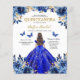 Celebrate your special day with the Floral Royal Blue Butterfly Princess Quinceañera Invitation. Featuring a stunning royal blue backdrop adorned with delicate floral accents and enchanting butterflies, this elegant design captures the beauty and grace of a quinceañera. Perfect for a princess-themed celebration, the invitation combines timeless charm with a modern touch. Invite your guests to join in the magical festivities, marking this unforgettable milestone with an invitation that reflects the elegance and sophistication of your quinceañera celebration.