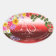 Make a lasting impression with this lovely and elegant monogrammed product label design featuring many different colourful flowers on a ruby red gradient background with a shimmery frame.