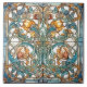 The artwork showcases a stunning arrangement of rustic indigo azulejo tiles, intricately designed with vibrant floral motifs.