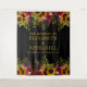 Gold yellow sunflowers and dark red burgundy roses bouquets borders on a black background with your custom script in faux gold typography making a beautiful photo booth rustic wedding backdrop. ++++++++++ Easy to personalise and perfect for late summer, autumn fall or winter rustic vintage traditional themed weddings.