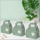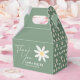 Favour Boxes in boho style with daisy floral artwork and sage green colour.