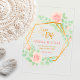 A modern and elegant save the date card printed on clear acrylic. Featuring soft watercolor roses, gold geometric accents, and a sophisticated transparent background, this design is perfect for couples who want a stylish and unique way to announce their wedding.