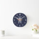 Floral Scissors - Navy Blue Hair Salon Round Clock