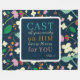 This design features a floral pattern including the bible verse 1 Peter 5:7.