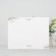 Blank, leafy scrollwork paper to print your own wedding program or other items. Plain white paper has gold-coloured leafy embellishments in the corners. Reverse is solid dark gold-brown colour.