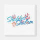 Blue handwritten Shabbat shalom greeting and hand drawn flowers