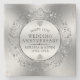 An elegant image of a shiny silver circle swirls frames the 25th wedding anniversary customisable template.