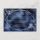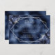 This elegant modern wedding details enclosure card features a silver geometric frame decorated with navy blue flowers and silver faux glitter on a navy blue faux foil background. The customisable text combines silver grey whimsical handwriting and copperplate fonts. The navy blue foil image is repeated on the back.
