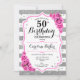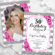 Floral Silver White Pink Photo 50th Birthday Invitation