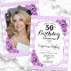 Floral Silver White Purple Photo 50th Birthday Invitation