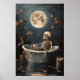 Floral Skeleton Taking A Bath Print, Dark Poster