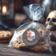 A gothic yet elegant “Happy Halloween” sticker featuring a skull with red poppies, soft florals, and a delicate butterfly on a textured grey background. Perfect for sealing Halloween party favours, decorating gift bags, or adding a spooky chic touch to seasonal packaging.