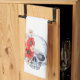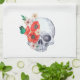 A striking kitchen towel featuring a watercolor skull adorned with vibrant red poppies, soft florals, and a delicate butterfly. Perfect for adding a gothic yet elegant touch to your kitchen décor, seasonal entertaining, or as a unique Halloween hostess gift.