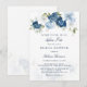 Customise this bridal shower invitation card by clicking the "Personalise" button above. The card features a modern elegant chic dusty blue flowers with white, light blue, and olive green bloom.