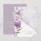 A handwritten, signature font combined with geometric frames, sparkly backgrounds and lush florals are used in this collection to set a warm and intimate tone for your wedding. The wedding RSVP shown here, with it's corner floral arrangement in trendy mauve, lilac and cream provides the details of your big day, all while offering a sneak peek of your wedding aesthetic and style as a couple. Search ID889 to see all the products in this wedding set.