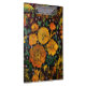 This vibrant image is a combination of a painting and digital art. It features glowing, golden-yellow and orange flowers with intricate, web-like textures. The flowers resemble roses and other blossoms, surrounded by a tangle of neon-like stems and leaves in shades of green, orange, and red. The background is dark, almost black, which enhances the luminous effect of the flowers and foliage. There are also tiny, twinkling star-like lights scattered throughout, adding a magical or cosmic feel.