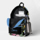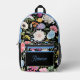 Beautiful backpack with a floral Spring design on black with blue edging and font - update the name prior to placing into your shopping cart.