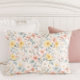 This spring floral pillowcase showcases pastel pink, yellow, and blue tones set against a light gray background. Accenting teal green leaves enhance the floral design, making it ideal for spring and extending through the fall season. This pillowcase will transform your bed, creating a cozy ambiance in your bedroom with its delicate floral pattern. The reverse side features a soft pink, mirroring the floral print's color. A matching duvet cover is available in my Home & Garden category, under the Bedroom subcategory.