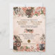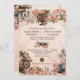 Steampunk elements including gears and clocks combine with pink and white flowers to give a soft touch to this offbeat wedding invitation. Perfect for the gothic, steampunk, or alternative bride or couple. The background is a soft pink and peach hued watercolor wash with more steampunk images with a transparent effect. This invite can also be customised for an engagement party, anniversary celebration, or birthday party. Available with matching products.
