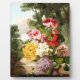 Still life with Hollyhocks, hibiscus, lilacs, yellow lilies and butterflies in a wood.