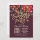 Bachelorette Party Invitation Card Template - Burgundy Marsala Red Watercolor Floral with String Lights and Faux Gold Foil Script.