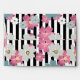 Floral, striped , black and white, stripes black, flowers, pink , blue, retro, floral retro