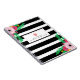 A spiral notebook for teachers featuring a black and white stripes design on front with floral design at bottom right and top left. Front features custom text under illustration of a pink apple.