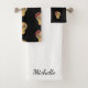 Floral Day of the Dead black and white bath towel set, with a colourful Sugar Skull and script typography design. With black customisable lettering, you can add your own name. A fun addition to your bathroom decor.