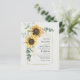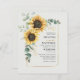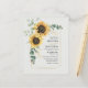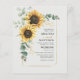 Create a modern Sunflower Floral Budget Wedding invitation card with this cute template featuring beautiful rustic floral bouquet, geometric gold effect frame, with modern simple typography.