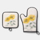 Floral Sunflower Personalised Script Oven Mitt & Pot Holder Set