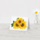 This charming floral notecard features vibrant yellow sunflowers with green leaves highlighted against a creamy white background.