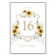 Floral Elegant Sunflowers White Hydrangea Gold Crest Table Number