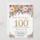 Floral Surprise 100th Birthday Invitation Gold