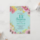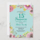Floral Surprise 15th Birthday Invitation for Women. Watercolor Floral, Teal Aqua Turquoise Background. For further customisation, please click the "Customise it" button and use our design tool to modify this template.