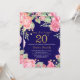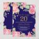 Floral Surprise 20th Birthday Invitation for Women. Watercolor Botanical Floral Flower. Gold Glitter. Pink Peonies Floral Flowers. Adult Birthday. Navy Blue Background. For further customisation, please click the "Customise it" button and use our design tool to modify this template.