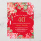 Floral Surprise 40th Birthday Gold Glitter and Red Invitation