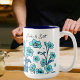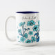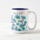 Cute Blue on White Floral Design Mug, Inscribed with Names, PERSONALIZED This Mug, with elegant script writing, Lovely free flowing Floral Design, in shades of Blues, Add your own names or names of loved ones by using the EDITING TOOL On the Product Page of this product, enjoy your Shopping Adventures!