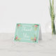 This charming note card features a hand painted watercolor pink rose flower frame highlighted against a vintage style mint green background with thank you printed in a bold white script font.