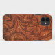 a tooled leather design with a swirling floral print. Please notice that like all Zazzle cases, this is not real leather- it is a leather print on a smooth plastic case