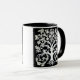 Floral Tree of Life in White on Black Mug