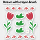 My hand drawn Floral tulips hearts in red and green bushes stickers drawn with crayon brush for you!