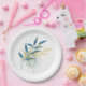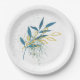 A beautiful bridal shower paper plate in a blue and gold floral design