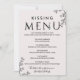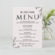 This floral typography kissing menu is perfect for an elegant wedding reception. The romantic design features simple lettering decorated with flowers, botanical edging, and a subtle blush background.