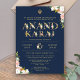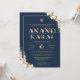 Floral Typography Navy Anand Karaj Sikh Wedding Invitation