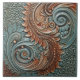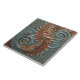 Floral Victorian Teal Orange Leaf Patterns Ceramic Tile