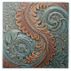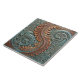 Floral Victorian Teal Orange Leaf Patterns Ceramic Tile