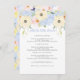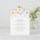 Sweet spring flower bouquet with pink roses, blue hydrangeas, purple and yellow flowers on a watercolor blue background. Elegant modern script typography with delicate swirls elements. Soft pastel shades of yellow, blue and pink are the main colours of this wedding suite. Personalise the text, add wedding information and make this invitation yours.