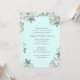 Christian vow renewal invitations in pale mint, with dark grey script text and little white flowers in the corners. On the back include a special bible scripture such as "I know the plans I have for you" from the book of Jeremiah, which is the sample.